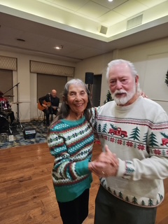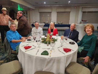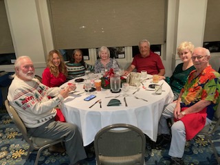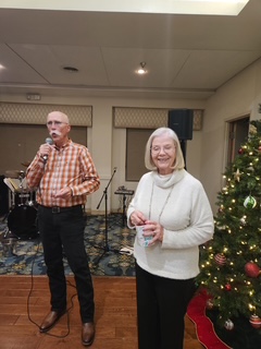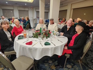 A merry group descended upon the River Ridge Ballroom donned in festive attire and jolly moods on the eve of December the 10th. With the outstanding coordination of Glittering Gloria and her Elf Assistant Jack, along with other pranksters, a good time was had by all, especially the winners of gifts made possible with the generosity of the Newton's. Friends, fun, food and frolic were captured on film. And speeches.