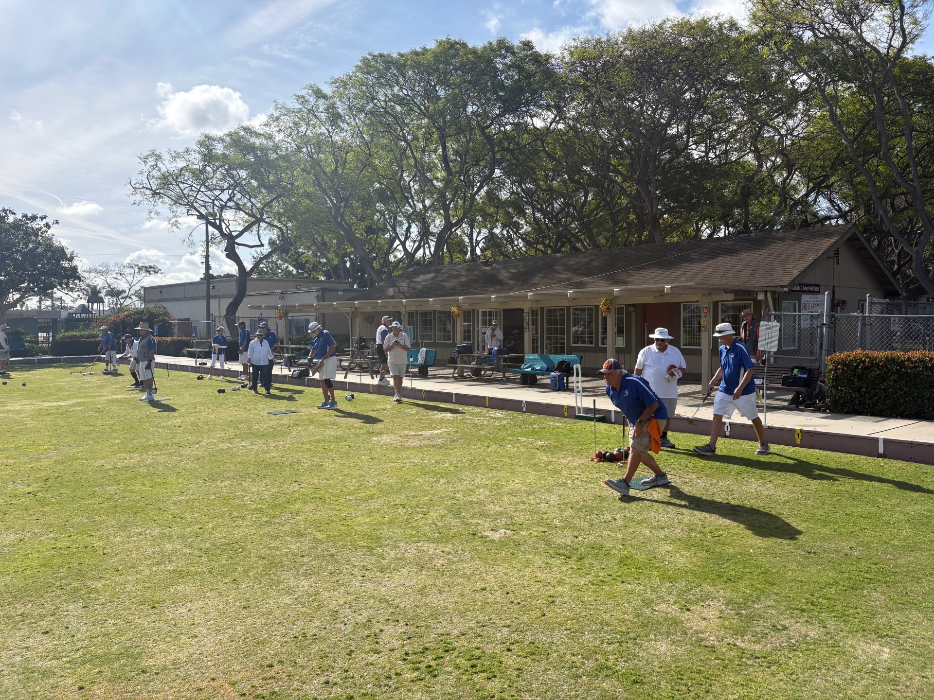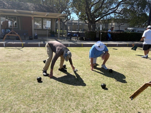 The Oxnard Lawn Bowl club tried out a two ball tournament format for the first time. Players found it interesting and challenging. There was a feeling that the strategy was similar to a team Cutthroat game. The pace was quick and the scoring was difficult.