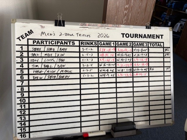 Two Bowl Triples Tournament Wedenesday March 11, 2026