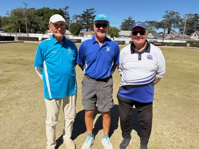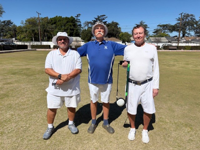 Tournament director Jack Bucey decided to try out a new tournament format for our club. Eighteen members chose to give it a try. With only two bowls per player, precision was king. The winning team of Bob Livermont, Mark Pendlebury and Mike Newton were accurate enough to go undefeated. Jerry Beatty, Jack Bucey and Dan McGillvray were close behind in second place. Participants enjoyed the quick and dynamic pace.